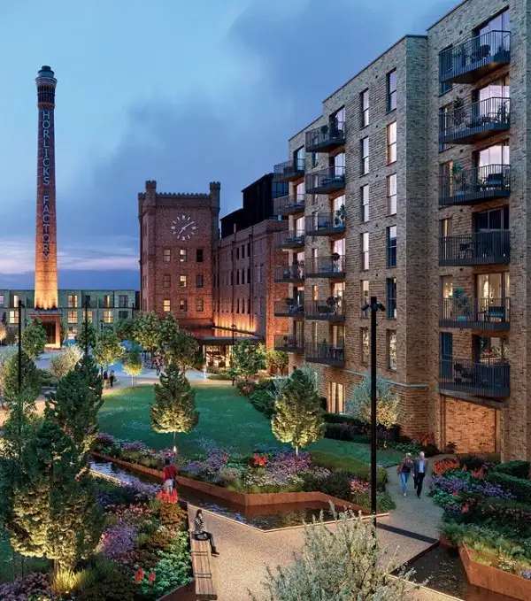 Horlicks Quarter is a stylish new residential development located in the heart of Slough, Berkshire. Built on the historic site of the original Horlicks Factory, this vibrant community offers a blend of restored heritage buildings and brand-new homes.